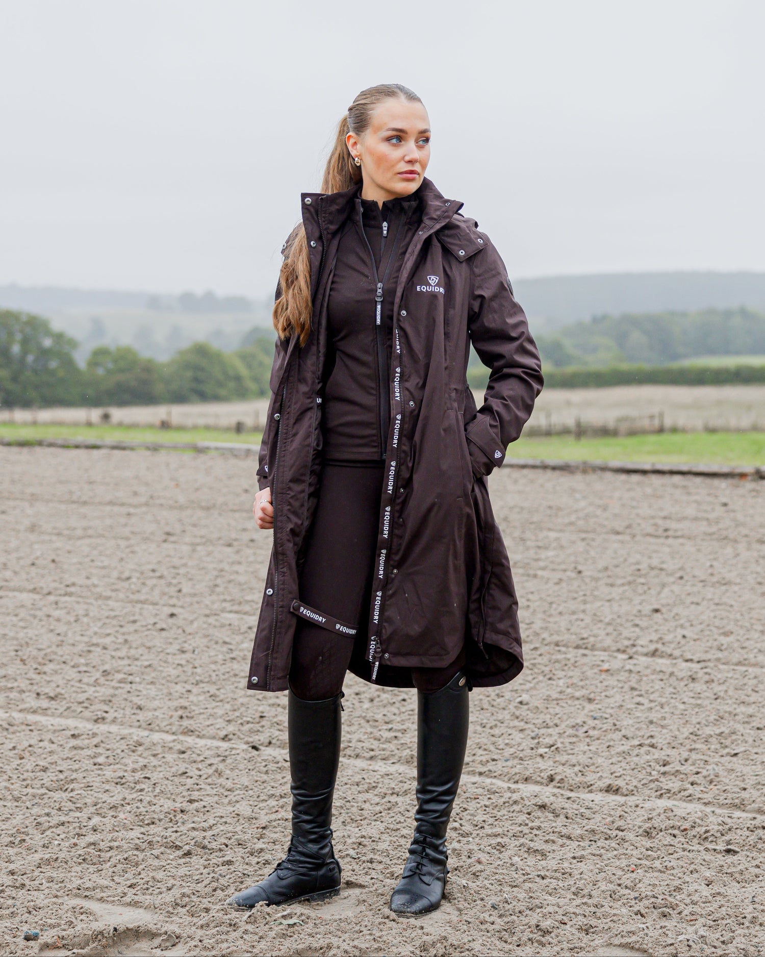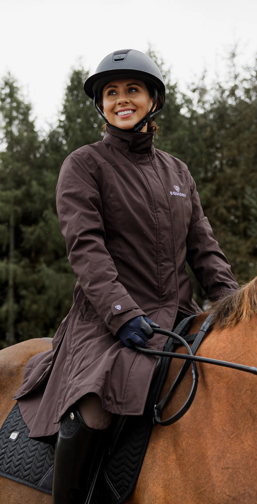 EQUIDRY is the trusted choice for equestrians seeking waterproof coats & jackets that truly delivers on complete weather protection. With advanced EQUIGUARD waterproof technology, every EQUIDRY equestrian waterproof coat keeps riders warm, dry, and comfortable year-round. Our new fitted styles - the Bronte riding coat and Talia waterproof puffer jacket - offer a sleek alternative to our bestselling oversized Evolution and Original coats, giving riders more options for reliable, fully waterproof equestrian outerwear.
