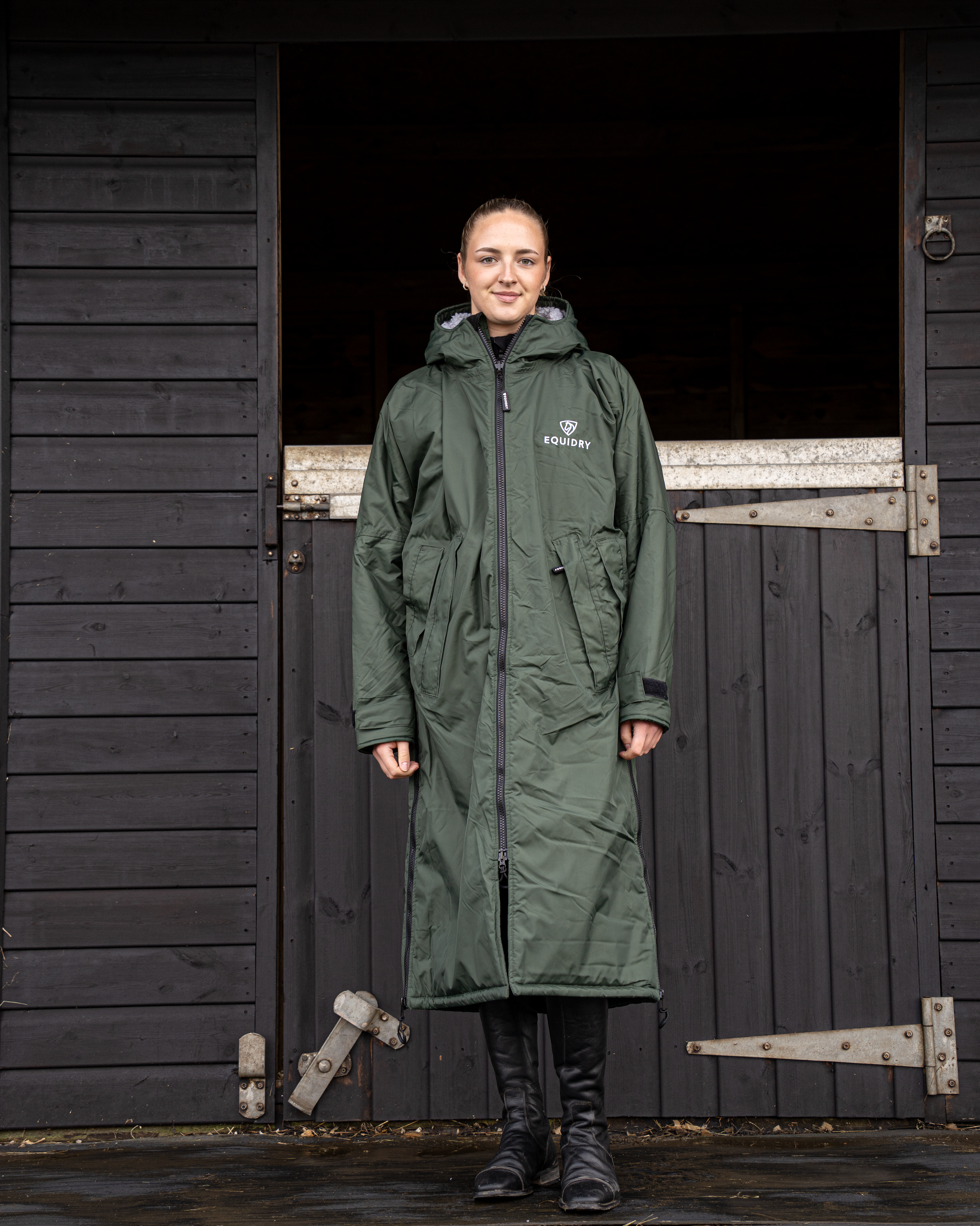 The EQUIDRY Original All Rounder has been designed to be oversized, which allows it to easily fit over the top of body protectors, competition wear and other clothing, and is a long-length coat, ensuring full body coverage. Riders love these jackets, but they are also the perfect companion for anyone who loves the great outdoors. Whether you are watching friends at a show, working around the yard, walking the dogs or going for a hike across the moors, the EQUIDRY Original All Rounder is a must-have to keep you warm, dry and comfortable!