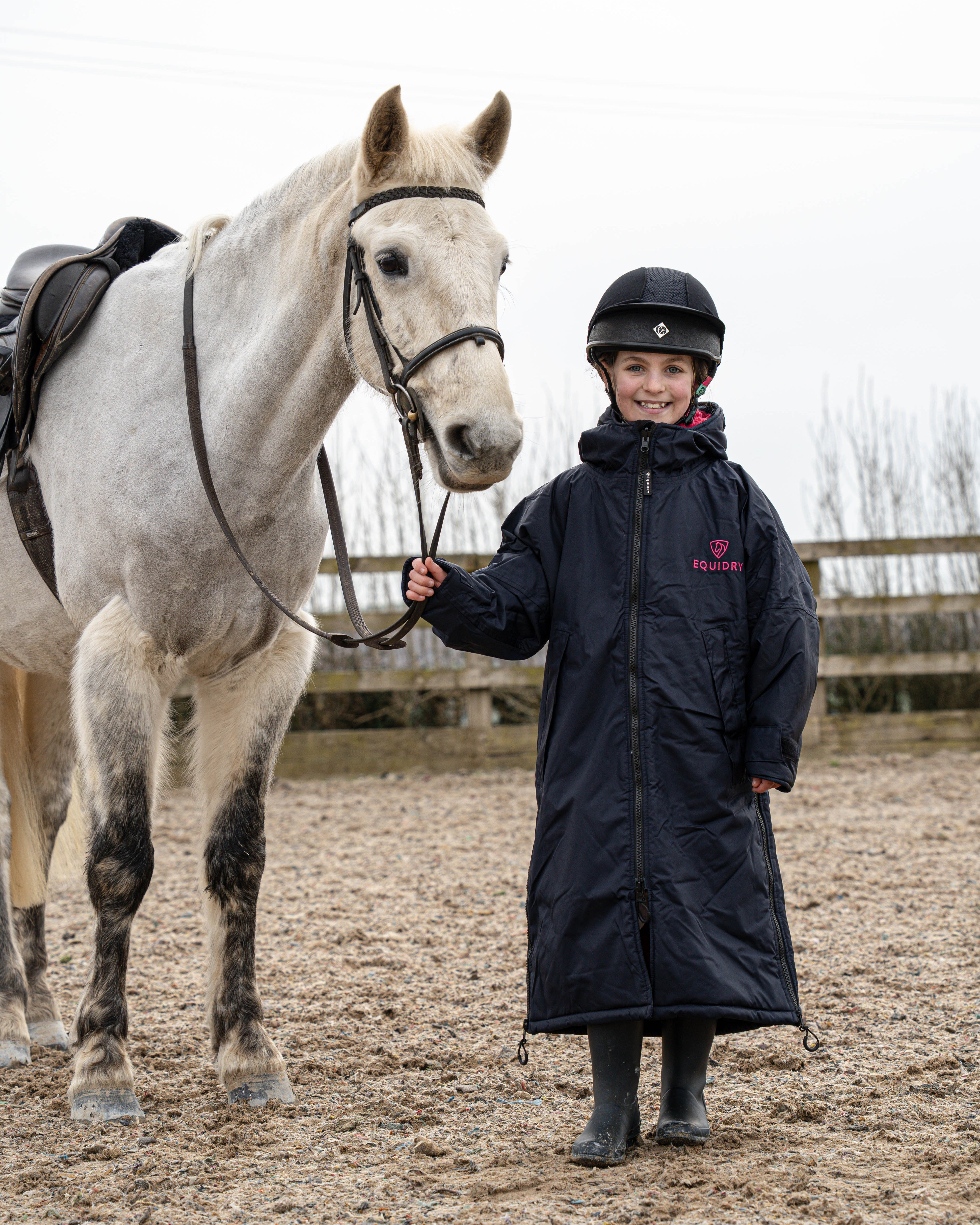 Designed to be oversized and worn full length, this performance coat boasts a remarkable 20,000mm waterproof rating, is fully breathable, fleece-lined, and layer-friendly, allowing plenty of room to comfortably accommodate a body protector.