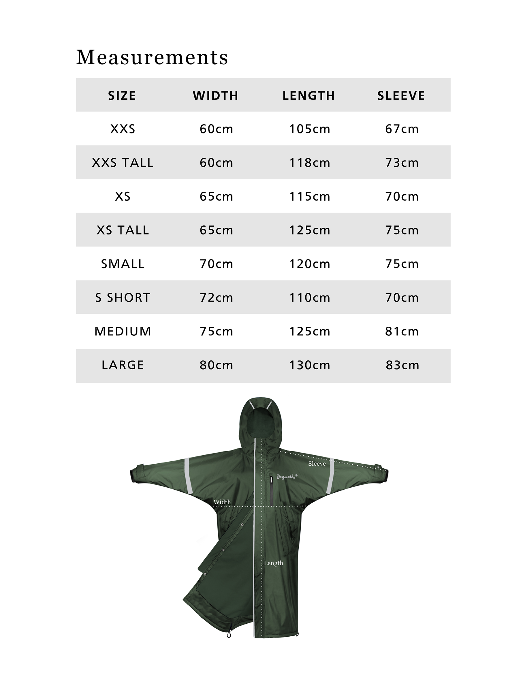 Its oversized, unisex design fits over everyday clothes, with an adjustable bungee waist for a tailored fit. Foldaway reflective strips keep you visible in the dark, and hidden backpack straps make it easy to carry when not in use. Comes with its own storage bag.