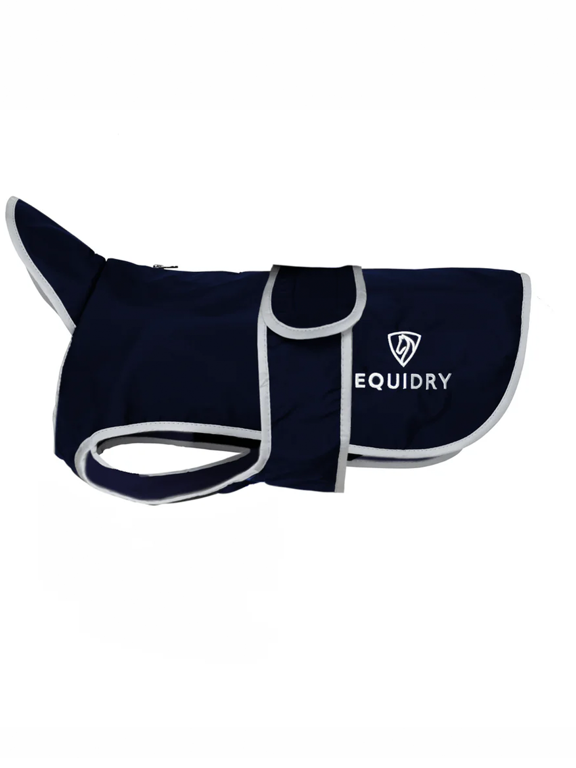 EQUIDRY Waterproof Dog Coat with soft, thin fleece lining, reflective logos & trim with lead and harness access, with an adjustable body band for chest coverage.