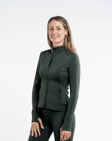 Women's Water Repellent Zip up Top | Black forest Green/Black