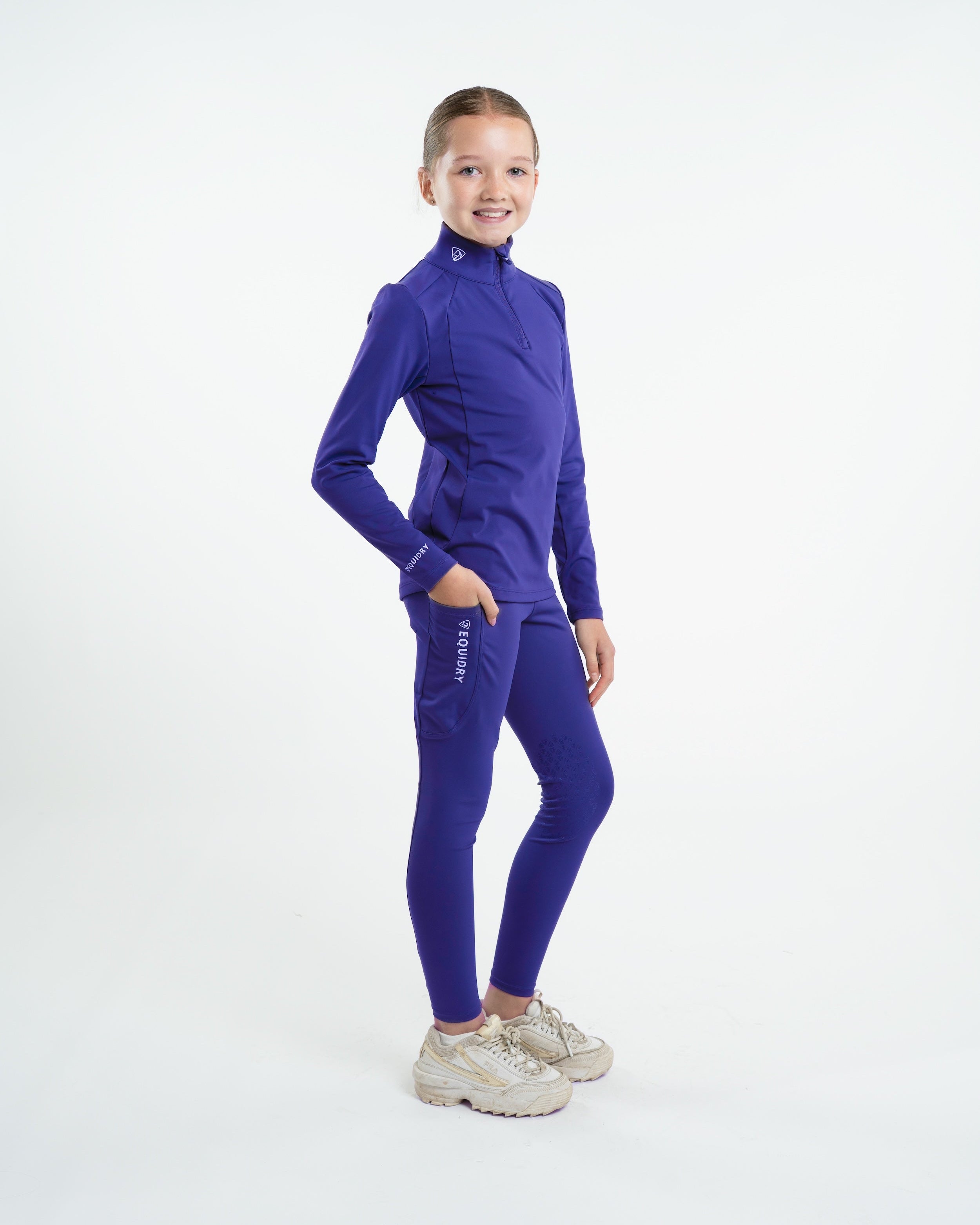 Designed for riders, this equestrian base layer offers the perfect balance of comfort, practicality, and style. Made from premium, super stretchy, water-repellent fabric, it keeps your child dry, comfortable, and supported, whether in the saddle or on the ground.