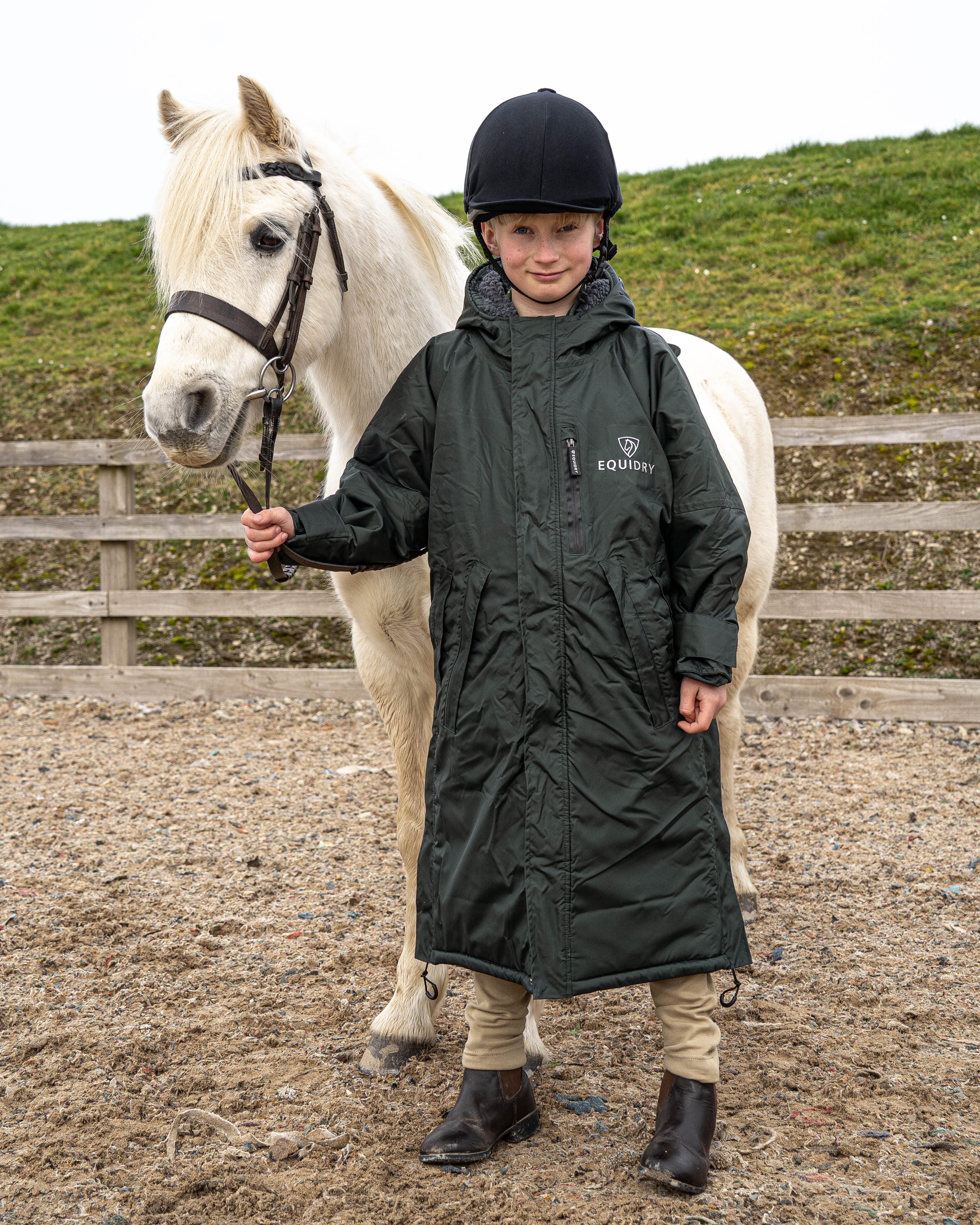 Designed to be oversized and worn full length, this performance coat boasts a remarkable 20,000mm waterproof rating, is fully breathable, fleece-lined, and layer-friendly, allowing plenty of room to comfortably accommodate a body protector.
