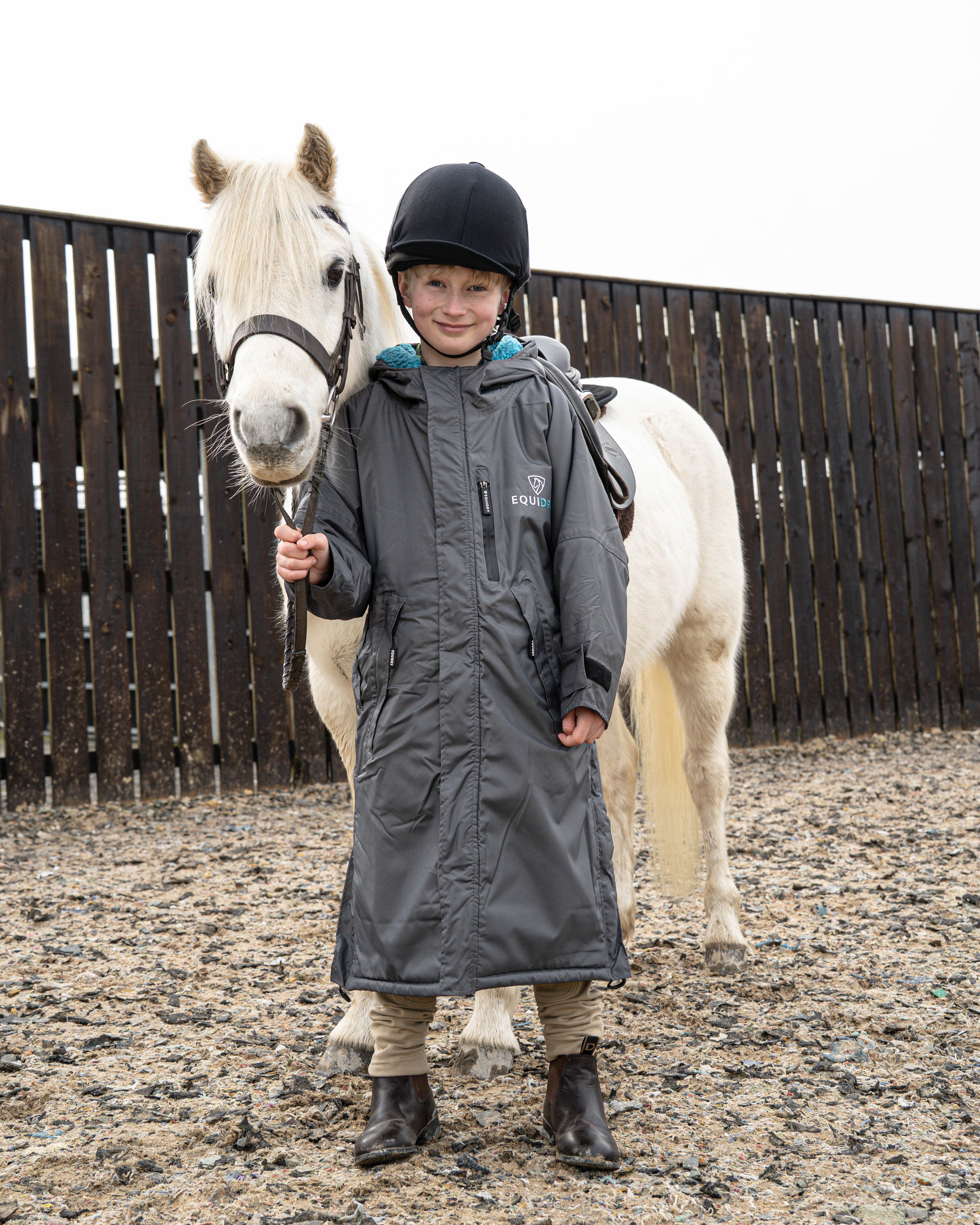 Designed to be oversized and worn full length, this performance coat boasts a remarkable 20,000mm waterproof rating, is fully breathable, fleece-lined, and layer-friendly, allowing plenty of room to comfortably accommodate a body protector.
