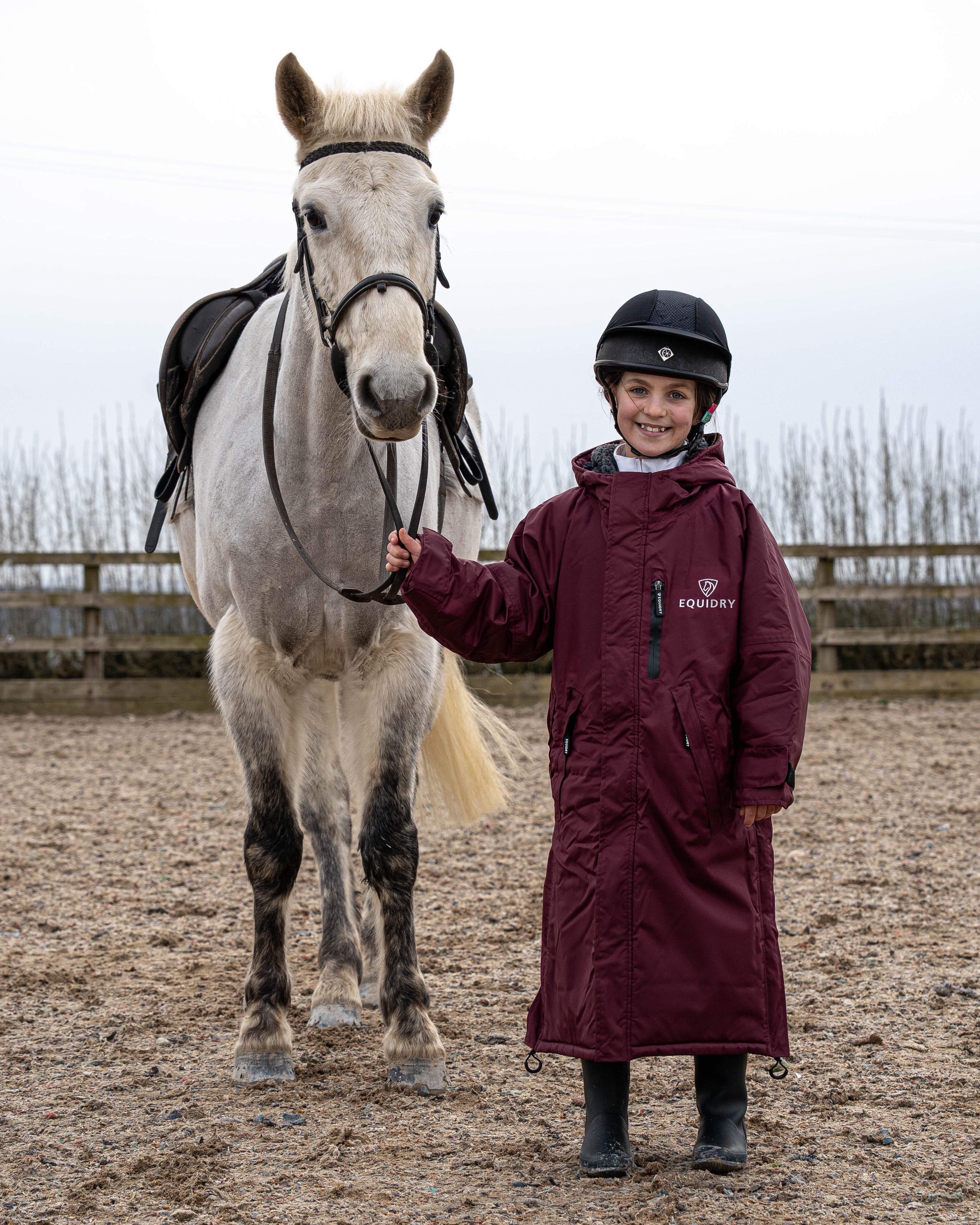 Designed to be oversized and worn full length, this performance coat boasts a remarkable 20,000mm waterproof rating, is fully breathable, fleece-lined, and layer-friendly, allowing plenty of room to comfortably accommodate a body protector.