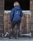 The adjustable stowaway hood is equipped with bungee toggles and a velcro strip for a customisable fit over most riding hats or a more conventional size when needed. When not required the hood stows away neatly in to the collar.