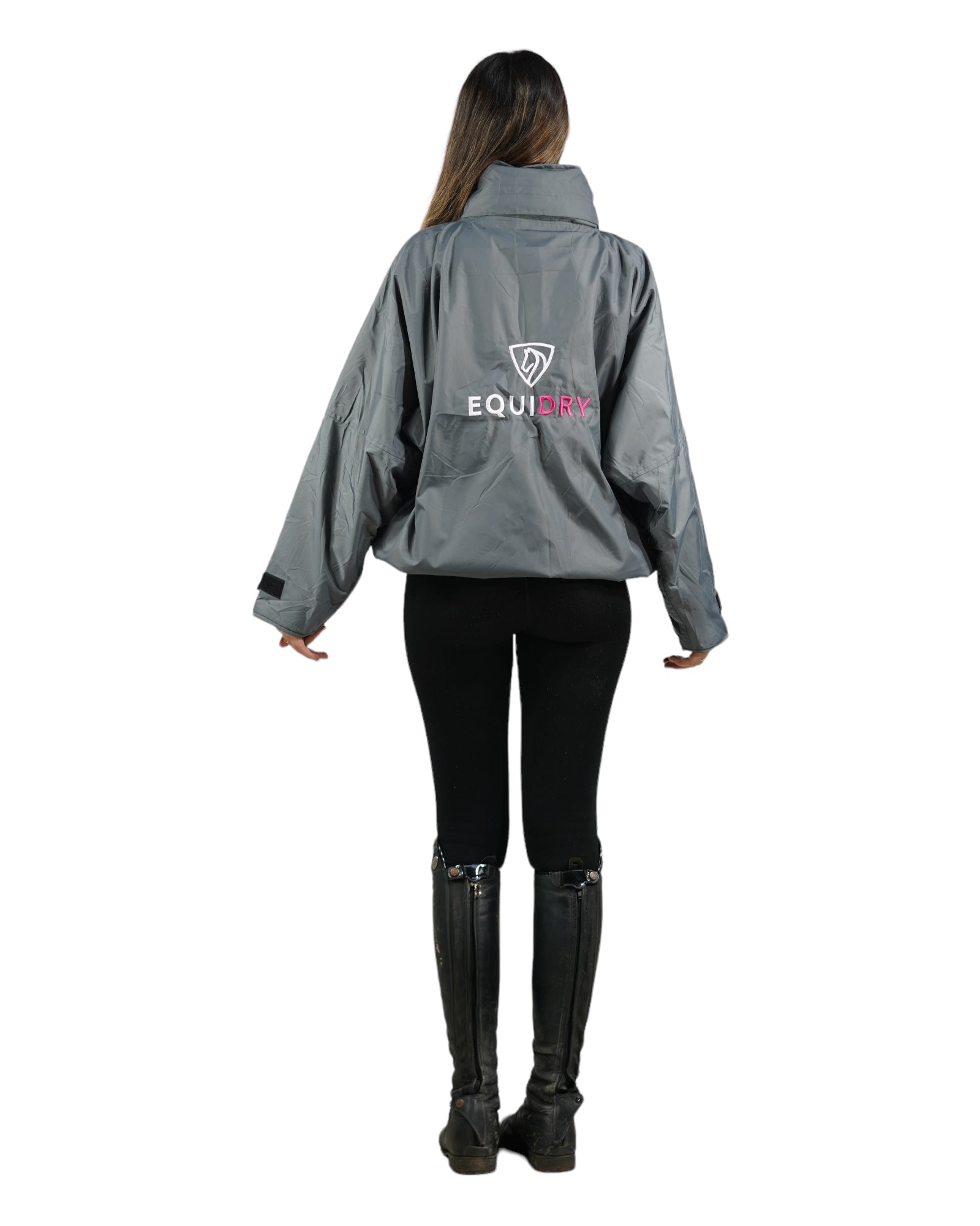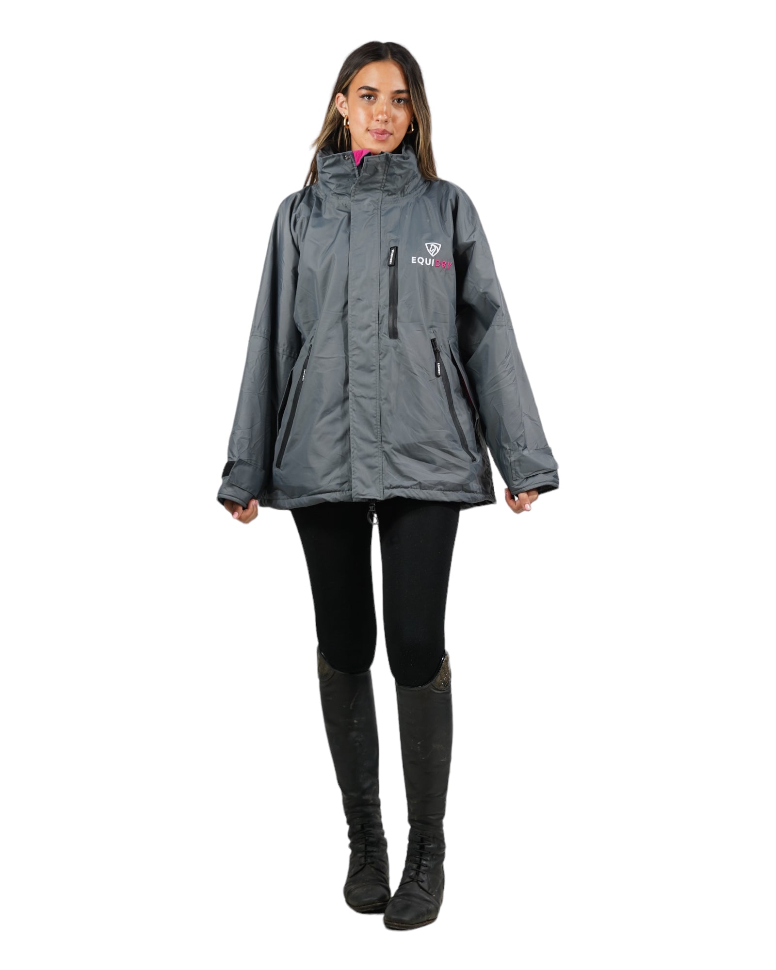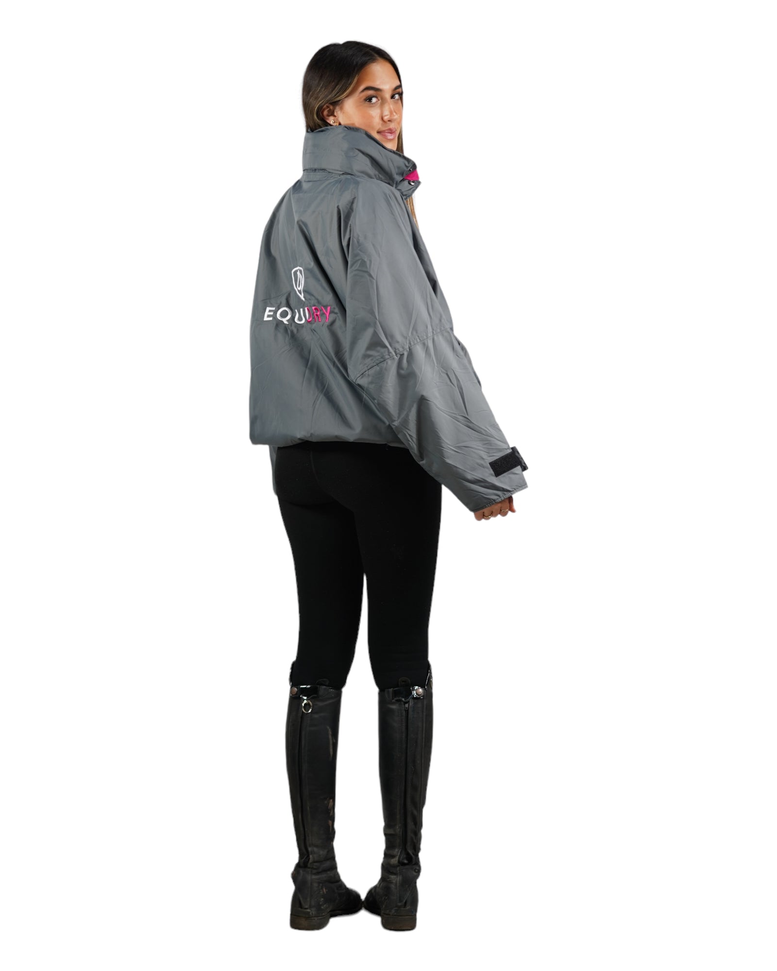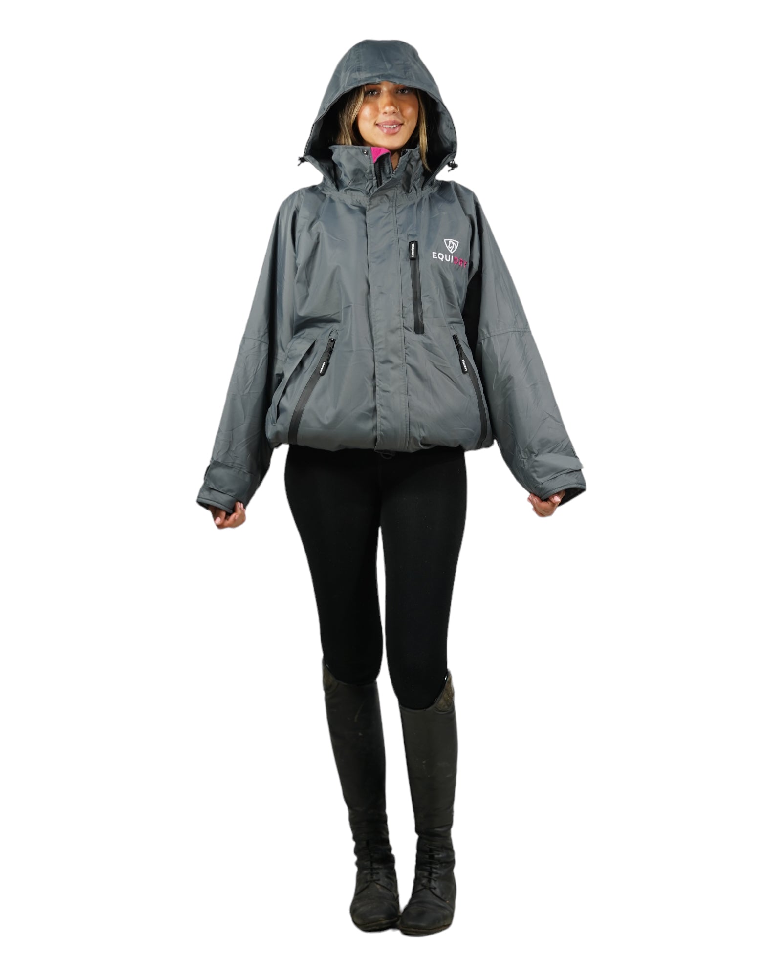 EQUIDRY women's waterproof short blouson style horse riding jacket in charcoal/peacock pink EQUIDRY women's waterproof short blouson style horse riding jacket in charcoal/peacock pink