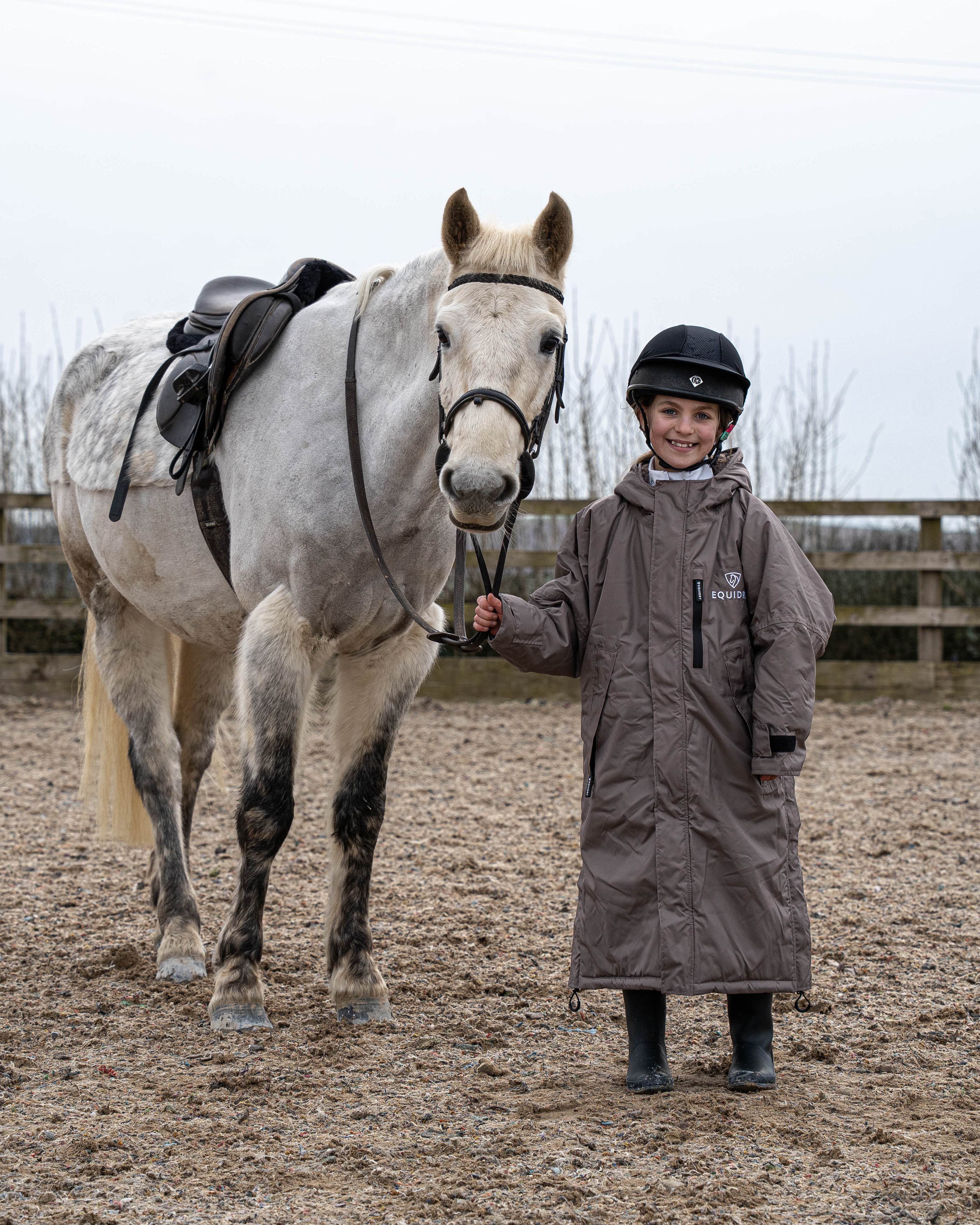 Designed to be oversized and worn full length, this performance coat boasts a remarkable 20,000mm waterproof rating, is fully breathable, fleece-lined, and layer-friendly, allowing plenty of room to comfortably accommodate a body protector.