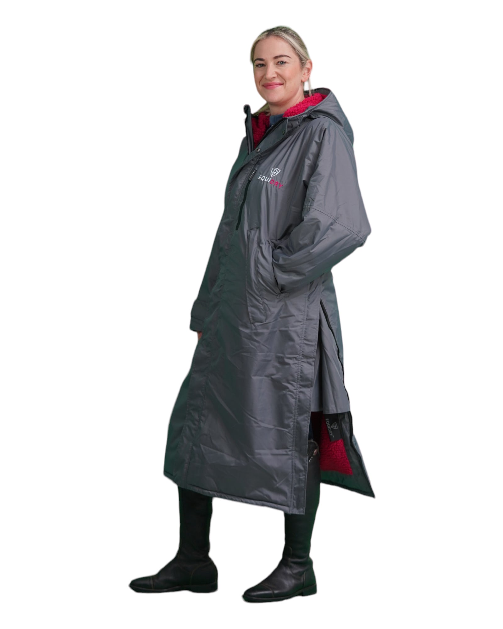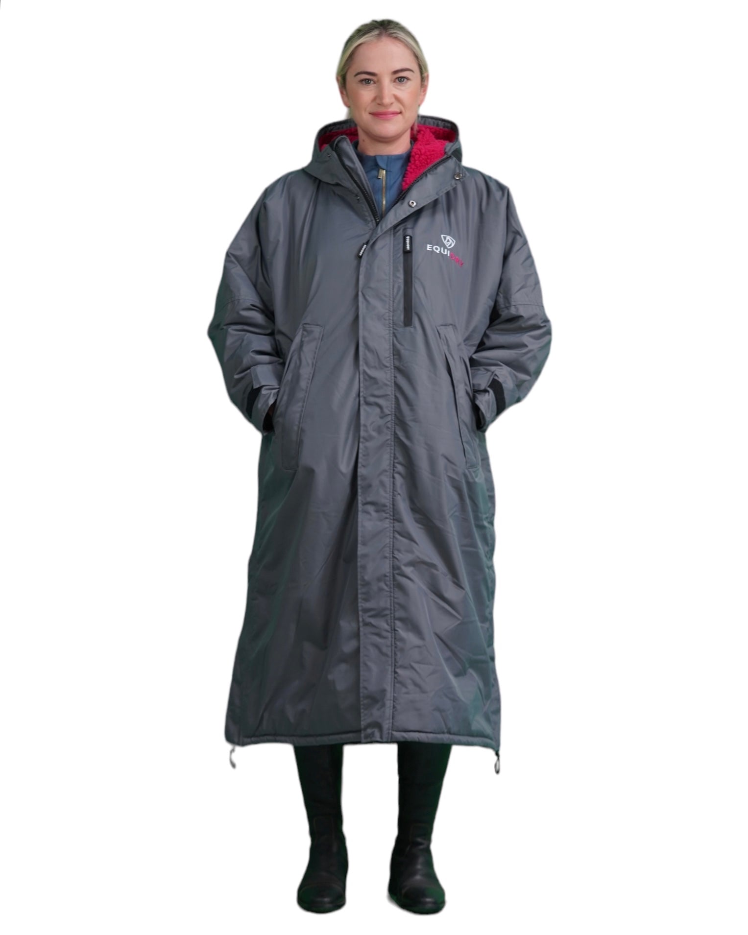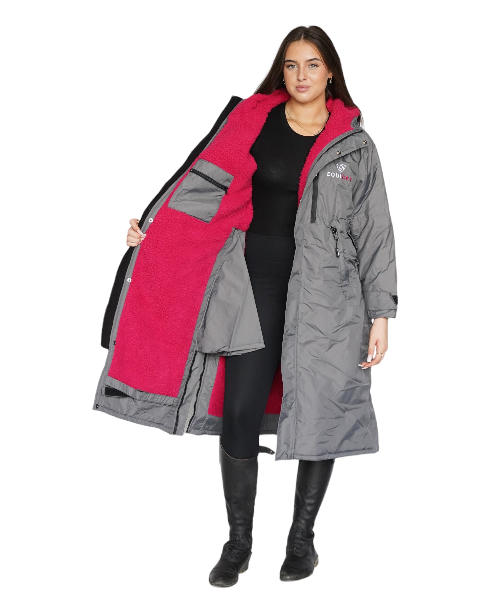 EQUIDRY women's long waterproof horse riding coat in Charcoal/Peacock Pink EQUIDRY women's long waterproof horse riding coat in Charcoal/Peacock Pink