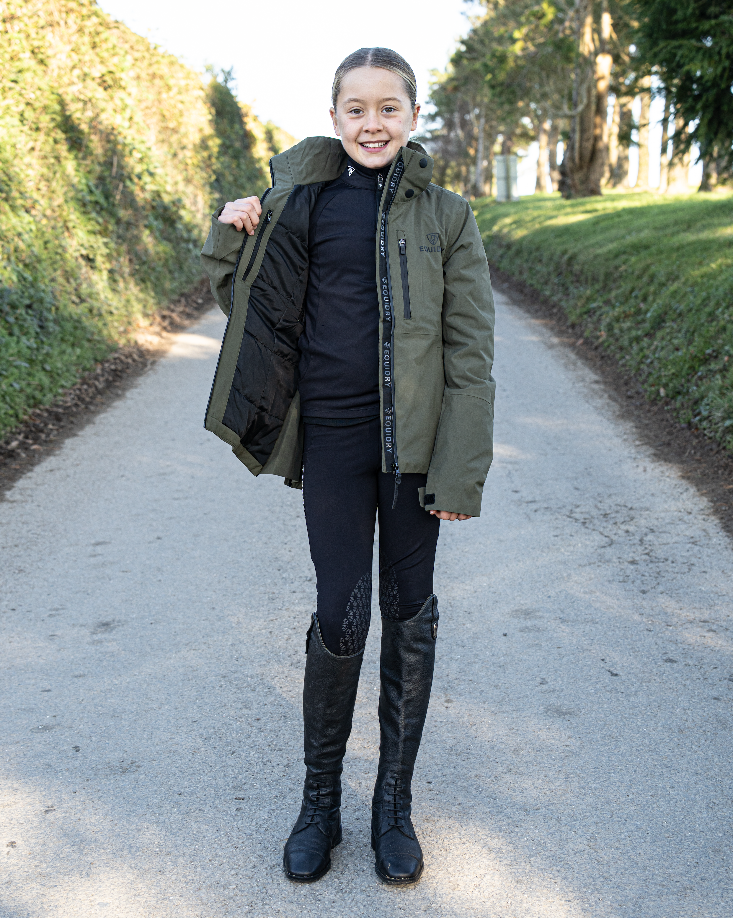 The EQUIDRY Iris Jacket is a warm, padded but lightweight, short style designed to keep young riders dry, comfy, and ready for any adventure. With a 20,000mm waterproof rating, windproof design, and breathable fabric, it makes sure the weather never gets in the way of riding or playing outside.