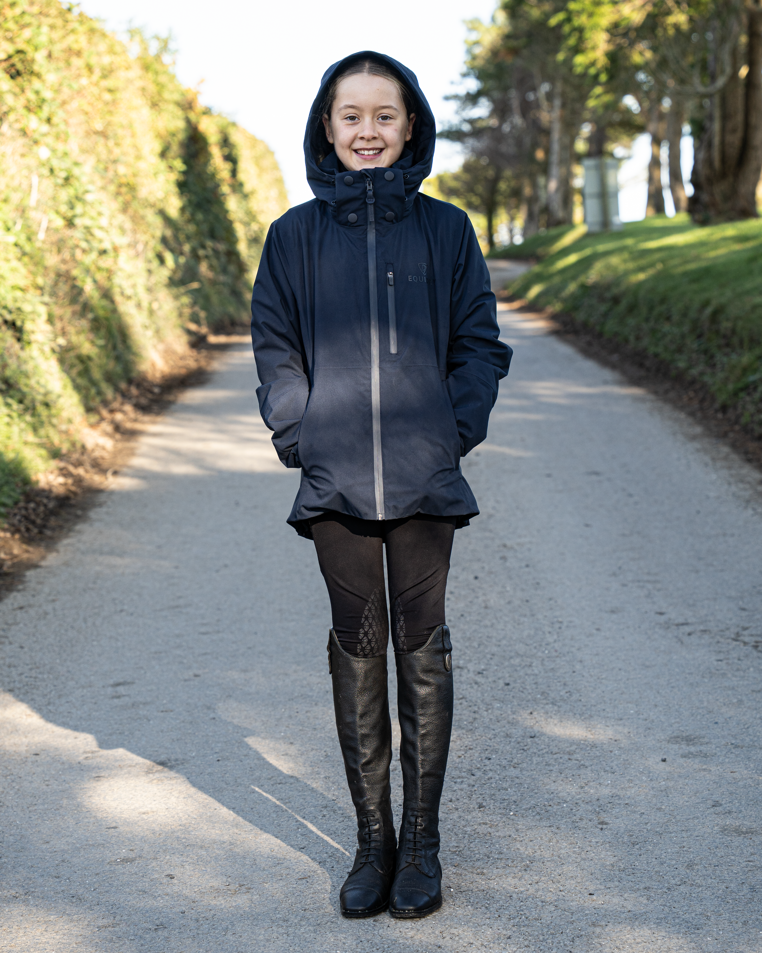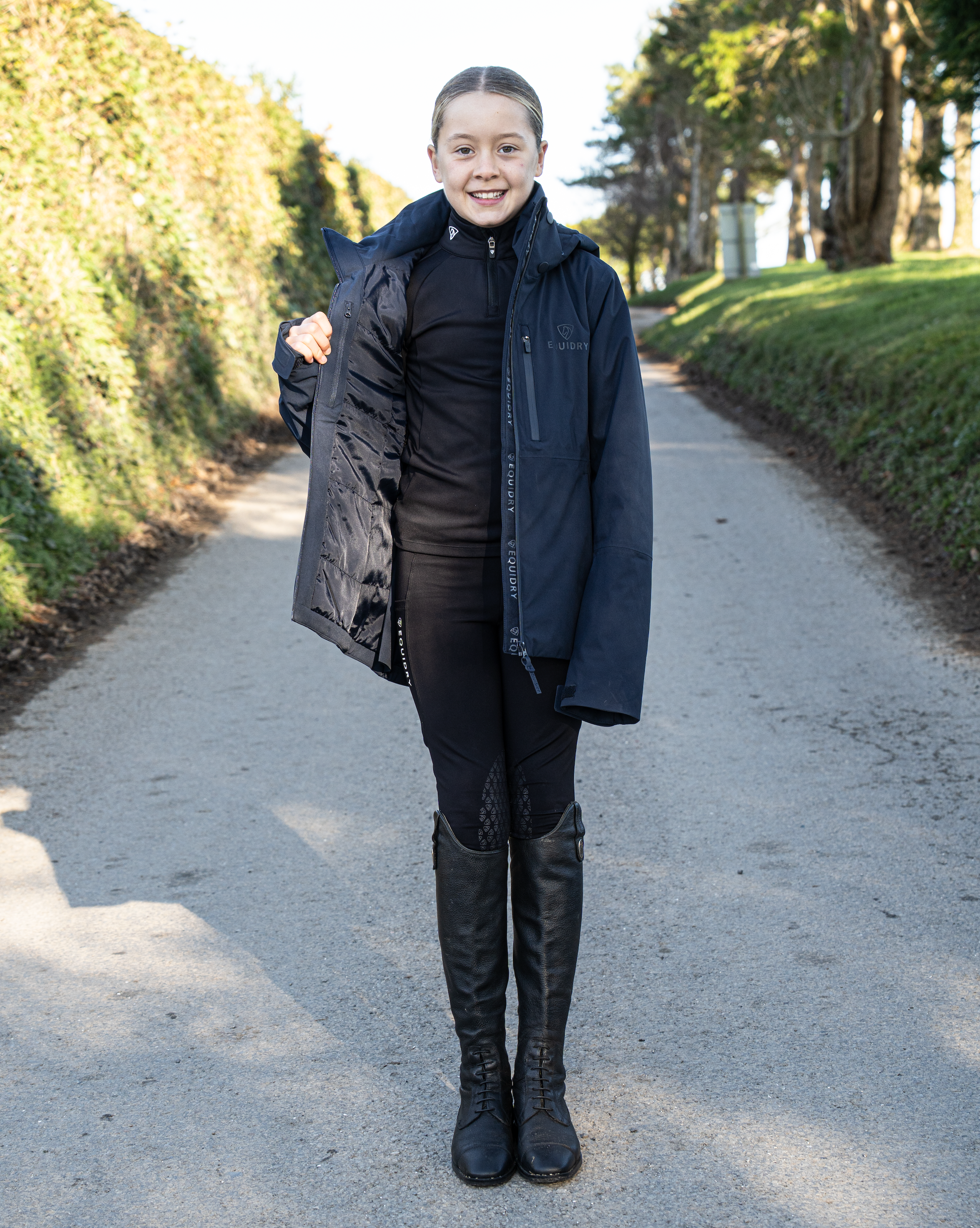The EQUIDRY Iris Jacket is a warm, padded but lightweight, short style designed to keep young riders dry, comfy, and ready for any adventure. With a 20,000mm waterproof rating, windproof design, and breathable fabric, it makes sure the weather never gets in the way of riding or playing outside.