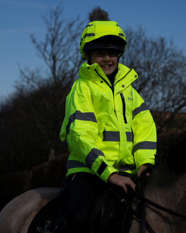 The EQUIDRY Hi-Vis Shortie is the perfect jacket for young riders who want to stay safe, dry, and comfortable whatever the weather!