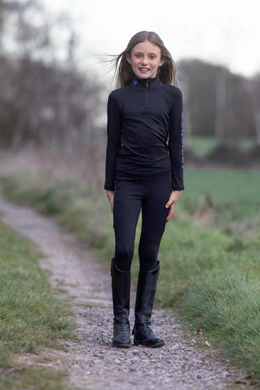 This base layer pairs seamlessly with our range of water-repellent leggings, zip-up tops, and jackets, creating a complete, coordinated equestrian look that's perfect for every young rider.